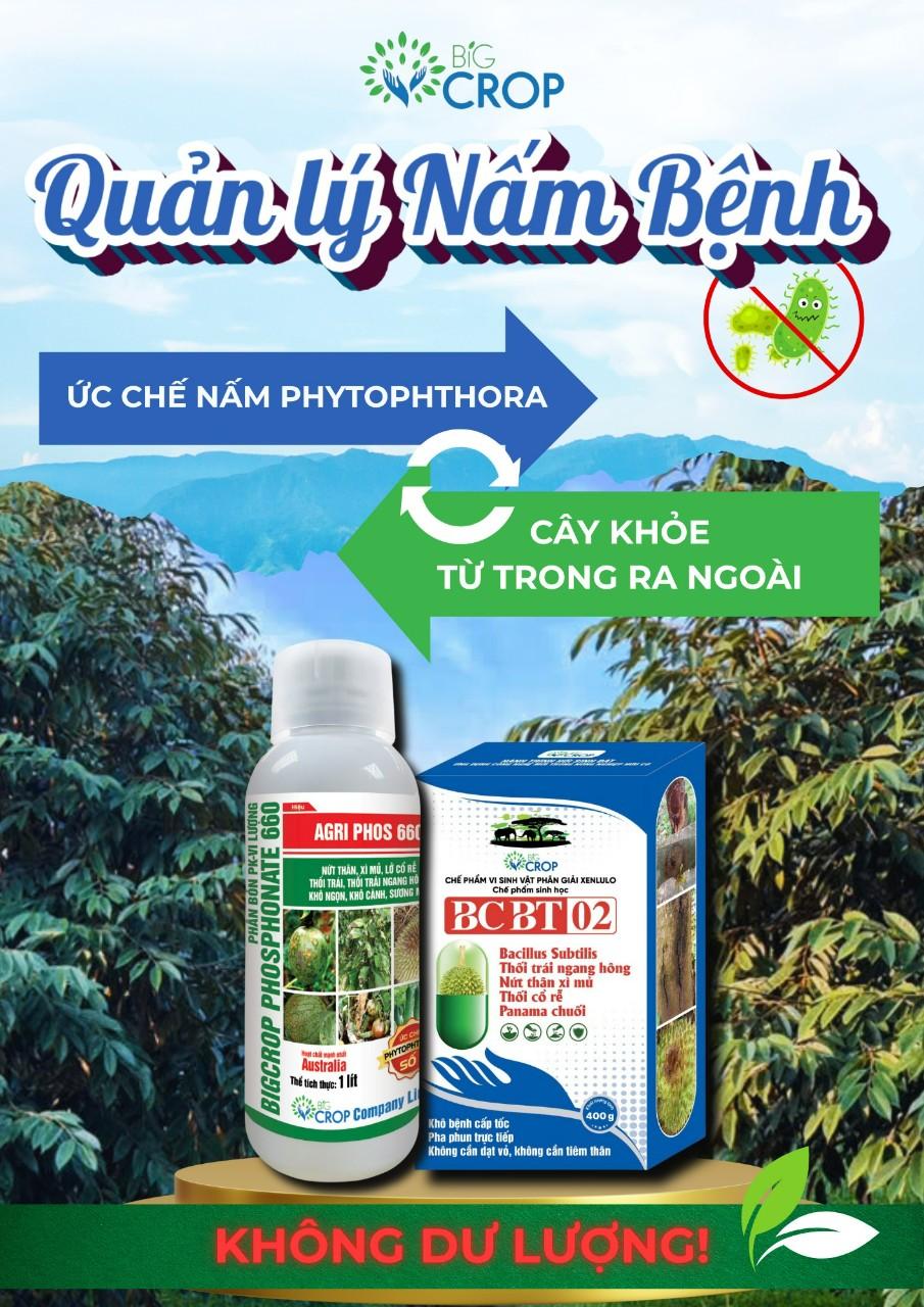 Bộ đôi QUẢN LÝ NẤM BỆNH TOÀN DIỆN BC BT 02 + BIGCROP PHOSPHONATE giúp Quý bà con: